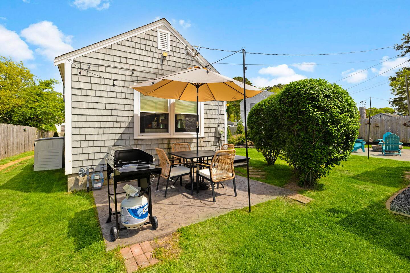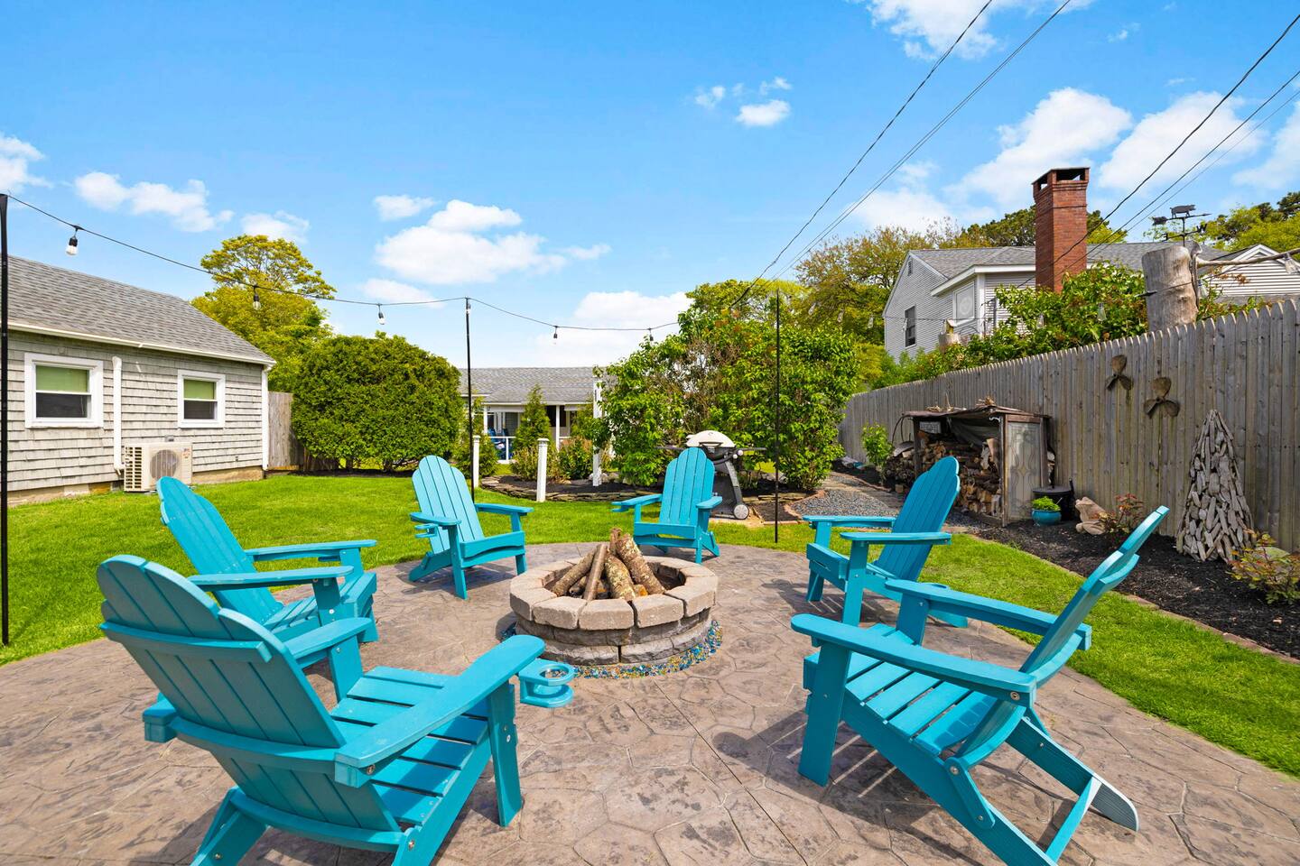 Rinse off after the beach with our outdoor showers, a true Cape Cod essential. Enjoy stress-free arrivals and departures with convenient on-site parking. (Please note: there is an additional cottage on the property, each unit with its own private spaces and dedicated parking.) The front cottage has an inviting outdoor fire pit, perfect for cozy stargazing. We warmly welcome your furry friends, ensuring your dog can enjoy the vacation right alongside you!